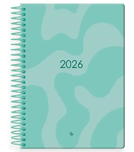 AGENDA AÑO SYROS TURQUESA 2026 DÍA PAGINA A5 ESPIRAL
