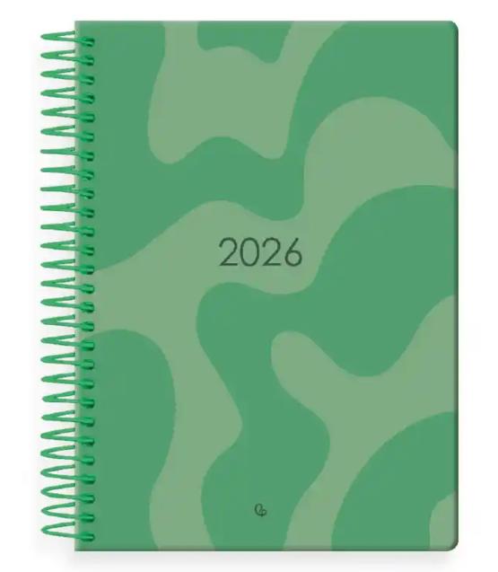 AGENDA AÑO SYROS VERDE 2026 DÍA PAGINA A5 ESPIRAL