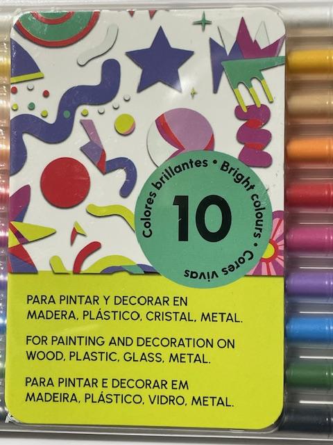 Su tinta acrílica de alta cobertura y secado rápido ofrece colores vibrantes, resistentes y duraderos, perfectos para lettering, ilustración y personalización de objetos. Blister de 10 colores surtidos.