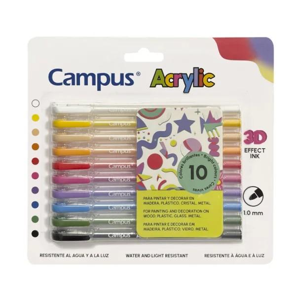 10 BOLÍGRAFOS/ROTULADORES ACRÍLICOS CAMPUS ACRYLIC. EFECTO 3D. PUNTA BOLIGRAFO