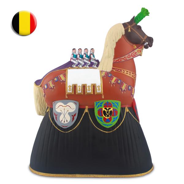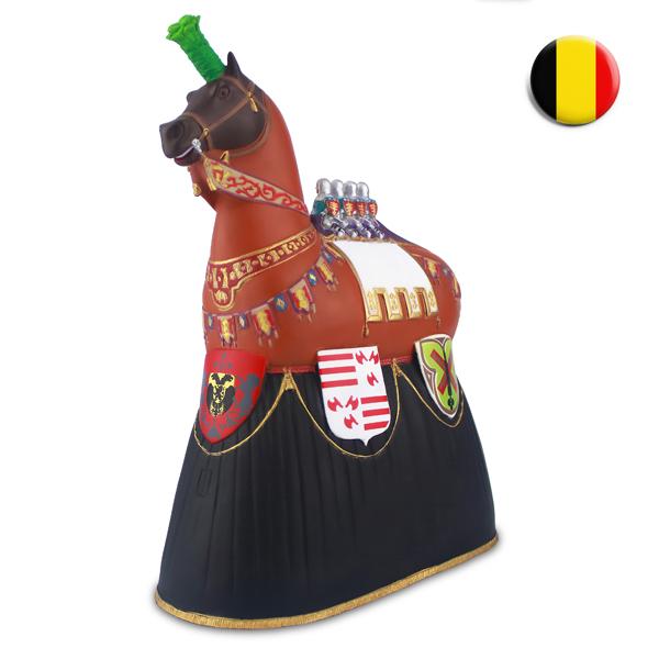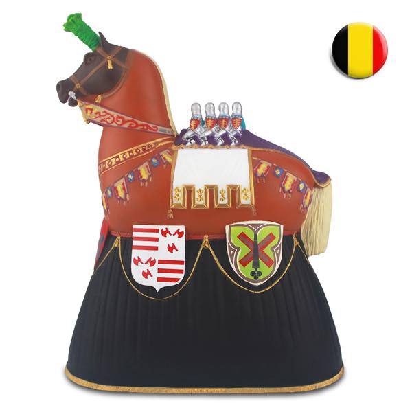 La grandiosidad y magnificencia del caballo Bayard, que porta a lomos a cuatro niños que representan a los hijos de Aymon (procedentes de un famoso poema épico medieval francés), queda expresada en sus dimensiones reales. Con un peso de más de 700 kilogramos y una altura de 6,30 metros nos podemos hacer a la idea de este maravilloso personaje que recorre las calles de la ciudad de Ath durante la Ducasse que se celebra el cuarto domingo del mes de agosto. Sus dieciséis porteadores lo hacen bailar y girar sin parar durante el recorrido que tiene lugar. Muñeco realizado en goma blanda.