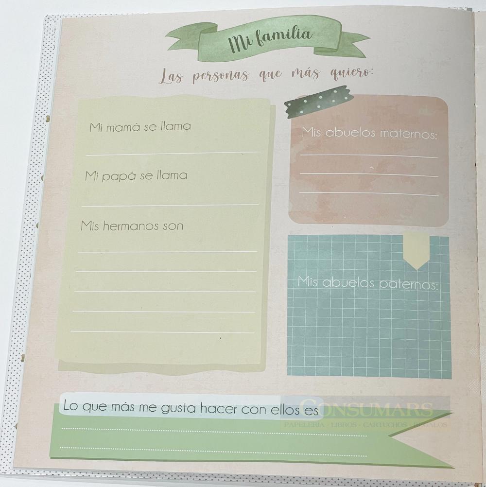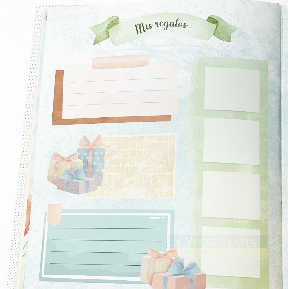44 páginas en papel blanco de 250 grms a todo color. Páginas para que metas toda clase de datos de tu Primera Comunión,