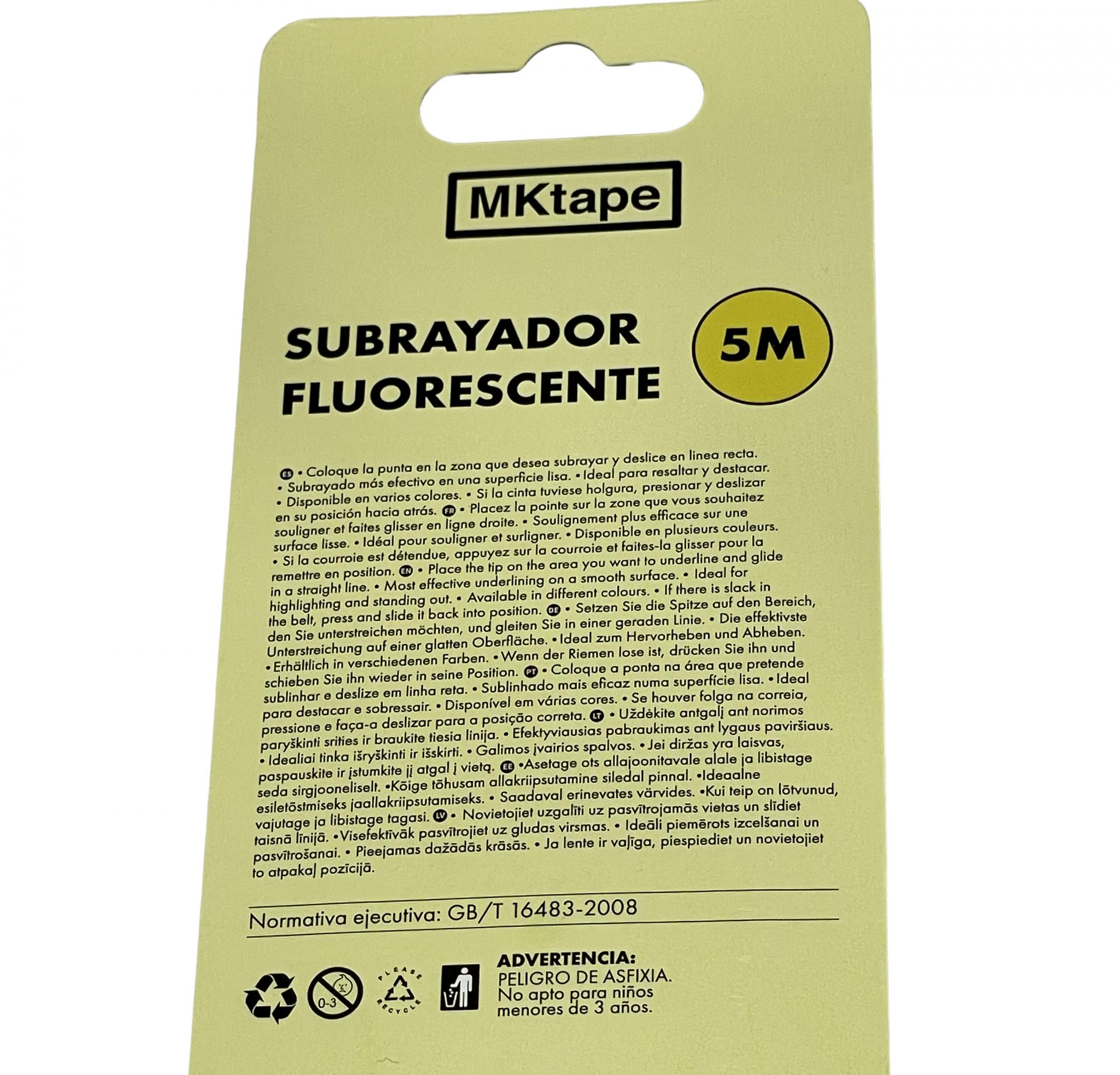 SUBRAYADOR FLUORESCENTE RETRÁCTIL EN CINTA 5 mts.